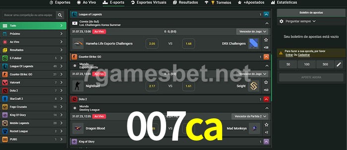 O 007ca oferece uma grande seleção de opções de apostas em e-sports com probabilidades competitivas
